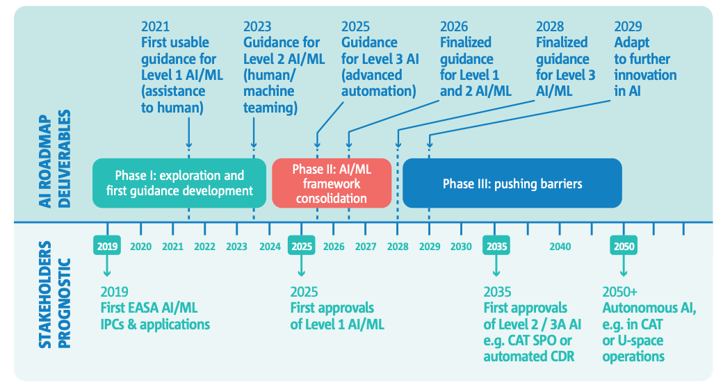 Europe’s Path via the EASA formally adopted these concepts in its AI Roadmap 2.0 (2023), making Learning Assurance a core pillar of its official strategy. The goal is pragmatic by using existing safety frameworks, but add the new ML-specific processes and evidence required to scale from simple assistance to higher autonomy.